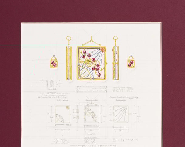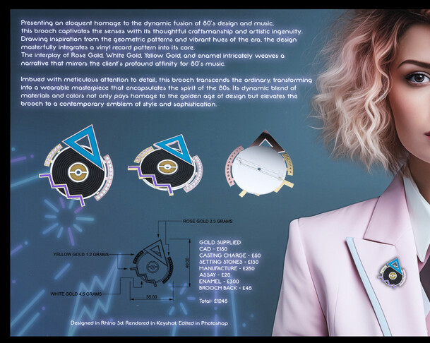 The client has a budget of £1,500 for manufacturing the jewel. Designs should incorporate the following materials, which are to be repurposed from her current jewellery collection: